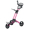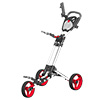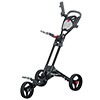 Spin It Golf Easy Fold Push CartThe Easy Fold push cart features the easiest / fastest folding mechanism on the market. A single push of a button easily folds the cart. This cart features a light weight aluminum frame, airless low maintenance tires, foot brake, and adjustable handle. All carts come complete with scorecard holder, storage compartment and umbrella holder. All carts are constructed of high quality material and come with a 1 year warranty against manufacturing defects.