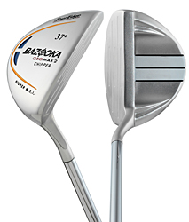 Tour Edge GeoMax 2 Chipper When you are just off the green and need to save par, the GeoMax 2 chipper can help you get down in one. Using an easy and effective putting stroke a chipper can add more consistency to your short game and lower your overall scores. The new GeoMax 2 from Tour Edge Golf features a heavy, super-wide sole that cuts through rough easily for consistent and clean contact from greenside lies. For maximum responsiveness, the club features a 431 stainless steel head that delivers a soft feel for a delicate touch. The club head itself, helps to eliminate miss-hits around the green compliments of its heel and toe weighting for added forgiveness, a radiused sole that minimizes turf contact, and a slender neck that eliminates βgrabbingβ by longer grass. The 37 Deg. loft is ideal for versatile shot-making and ideal speed control. For even greater touch, the GeoMax 2 offers an extended-length Winn chipper grip that allows for choking-up and added versatility around the green. The GeoMax 2 chipper is available in right hand only in 33β and 35β |