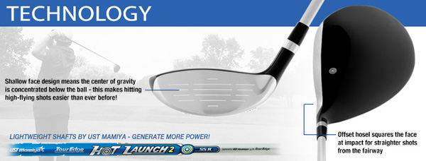 The club's shallow face design and low center of gravity are the ideal combination to produce higher launch angles with less spin. Shaft technology provided by UST Mamiya for Tour Edge powers the Hot Launch 2 series to deliver superior results.