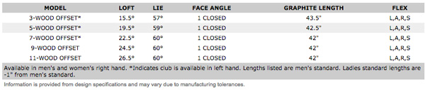 Tour Edge Hot Launch HL3 Offset Fairway Wood Specifications