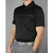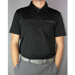 Travis Mathew Jake Polo 2 4-button placket, patch pocket on left chest with raised braille artwork ("Did I hear a splash?"), braille print across chest and printed TM script logo below back neck