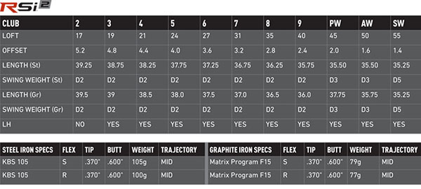 RSi2 irons are loaded with progressive multi-material technology and refined shaping to  provide playability and precision for all golfers. The long irons have tungsten low in the toe for higher launch and more ballspeed. In the mid irons we’ve placed high-strength, thin-face steel construction for high speed and consistency. The shorts irons Forged carbon steel face with milled grooves for soft feel and control that the better player demands. A fully forged 1025 carbon steel wedge for optimum feel and precision round out the most complete set of irons we’ve ever created.