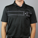 4 button placket, stripe design print across chest, contrast fabric color on inner collar stand, TM icon embroidery on chest, and TM script print below back neck