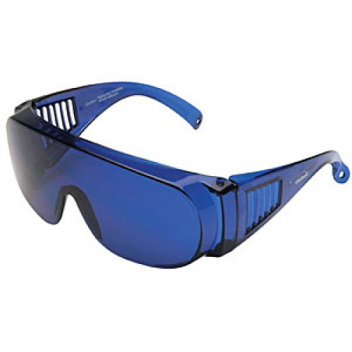 The V-500s are designed to fit over prescription glasses. The side temple guards prevent peripheral light from reaching the eye and the wide lens design provides a practical solution for all golfers who wear prescription glasses while golfing. All of our glasses come with a convenient nylon zippered carrying case that clips on your golf bag.