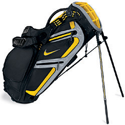 Nike Performance Carry To enhance the experience for the golfer on the course with a focus on comfort and functionality, Nike Golf has introduced the new Nike Performance Carry bag. The Nike Performance Carry bag features innovative technology that improves comfort and stability in the shoulder and back area. A versatile bag that is designed for walking or riding the course, The Nike Performance Carry bag has a ventilated back pad which provides better airflow and cushioning in key areas. Additionally the bag has dual-durometer wide bag base which offers stability while on a cart. "Nike Air" TechnologyNike, which has been known for developing "Nike Air" technology in its footwear products, also applies this same technology in the shoulder straps of its golf bags. The Nike Performance Carry bag has redesigned its air strap by "curving" the air bag within the strap to ergonomically fit one's shoulders. This new Nike Max Air Curved strap provides superior cushioning and shock-absorption while also distributing the load evening. Performance Carry Bag Features
