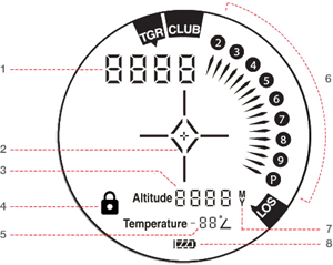 3 - LOS (Line of sight) range, Club Selector, Prism Lock, altitude output or temperature output